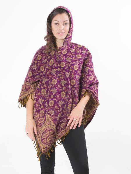Poncho à capuche violet en laine – Évasion népalaise – 34,50 €